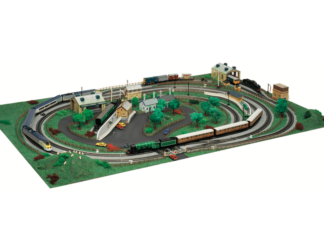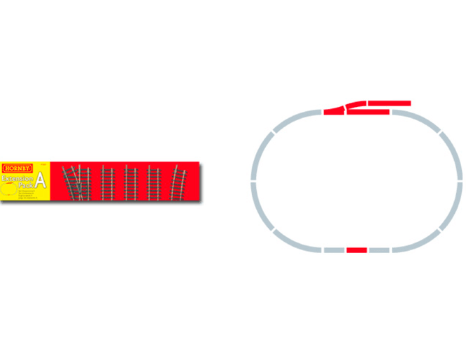 Ajoutez le pack d'extension A au Starter Oval fourni avec les petits trains Hornby pour réaliser cette configuration.